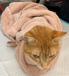 Yes, yes it can! Finding the GV20 acupuncture site in a cat is straightforward. Pinch the skin between their ears (yellow X) and inject along midline of the skull. For restraint, I recommend wrapping a towel around the cat first, then the person restraining can put their arms on either side of the cat and use their hands to steady the head. Don’t put the cat in the towel and restrain the head until ready to give the SQ injection. Use a 25-gauge needle for the injection. Solash, et al (2025) just published the first cat study looking at using dexmedetomidine and methadone SQ at GV20.